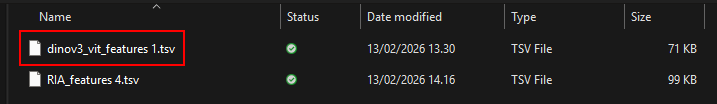 Per-object results, which is sourced from Object Info, produce one row per detected object, where each row carries identifying metadata (label type/name, ROI type/name, bounding-box envelope, object ID). When importing external TSV data to complement these results, the imported rows must align by position: row N in the imported dataset corresponds to object N in the per-object result list.