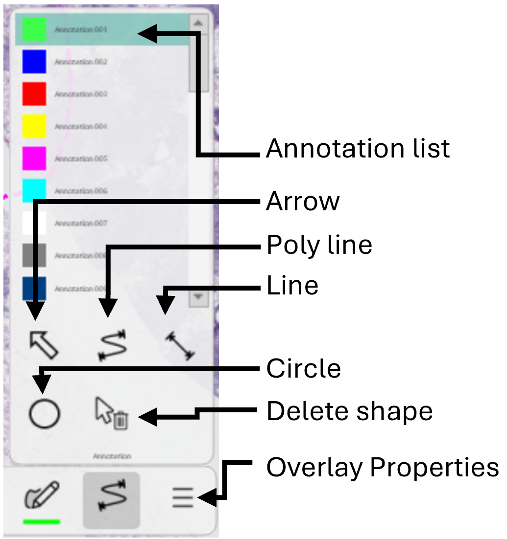 - Hover over annotation in the Drawing Tool to expand the Annotation overlay type.