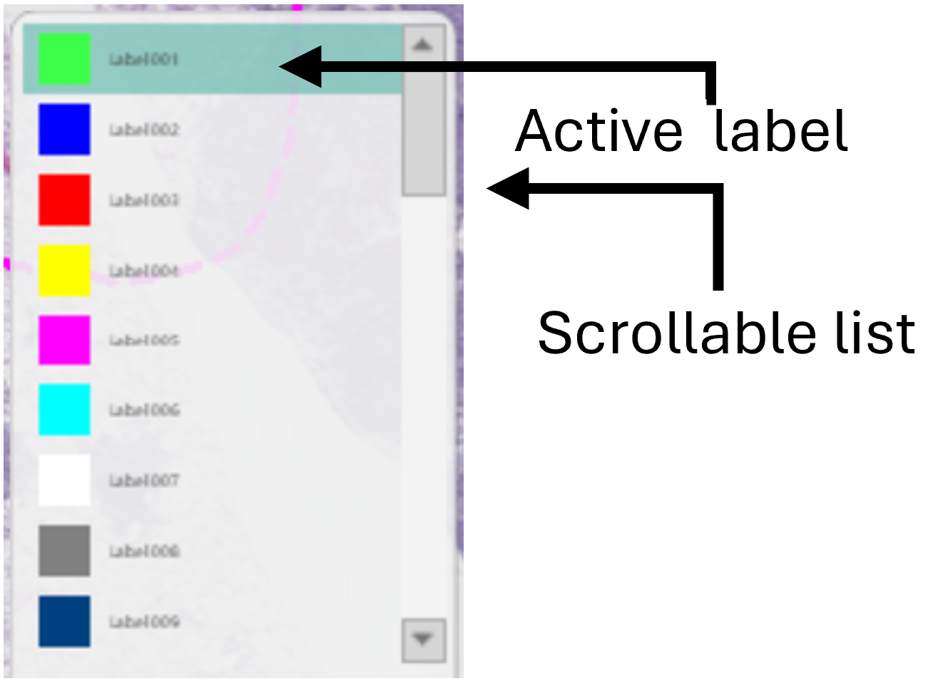 - Hover over the list and use the middle mouse button to scroll the list.