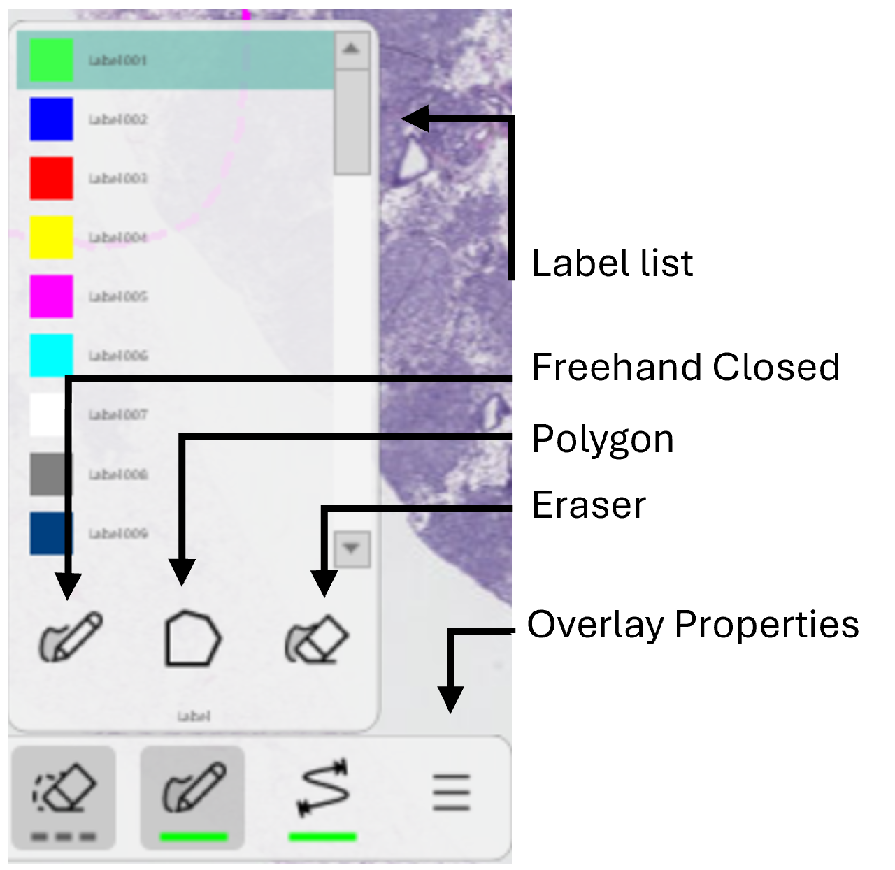 Hover over Label in the drawing tool to expand the Label overlay tool.