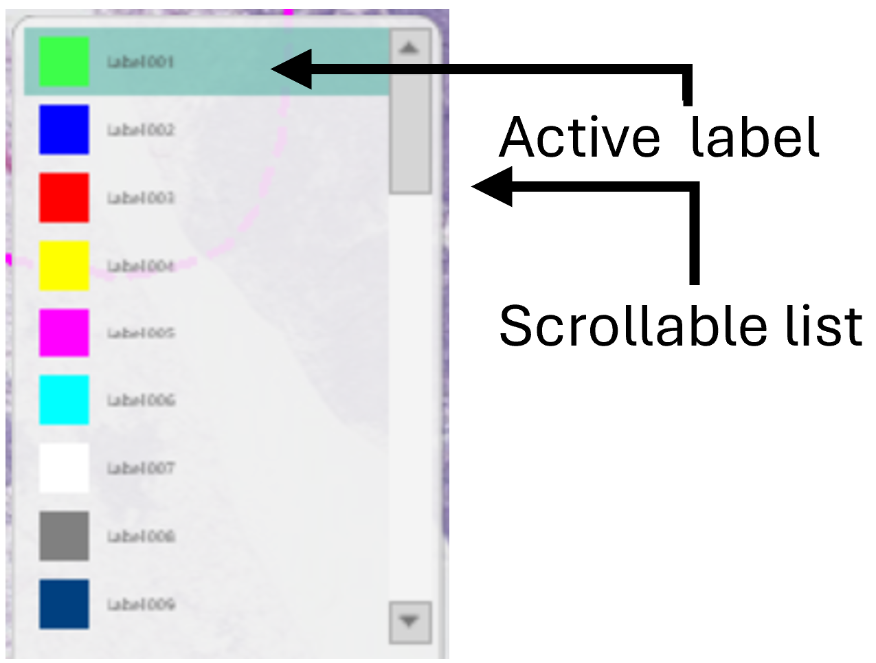 The current active label is the label highlighted in the scrollable list in the expanded drawing tool. Change the current label in the drawing tool by: