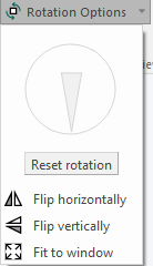 Clicking on the Rotation Options dropdown menu opens tools for adjusting the image orientation. The image can be rotated using the Rotation Wheel, to rotate the image as the wheel is turned. The image can also be flipped horizontally or vertically, or fitted to the window to ensure the entire slide becomes visible within the working area. Any rotation can be reset using the Reset rotation button.